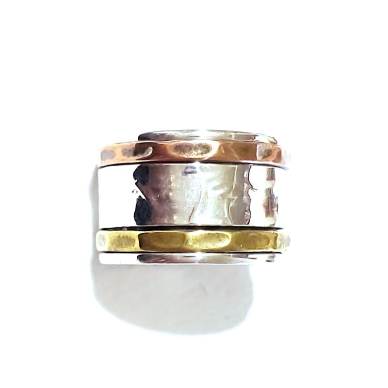 Είναι ασημένια βέρα με δύο περιστρεφόμενα βεράκια από χαλκό και μπρούτζο.