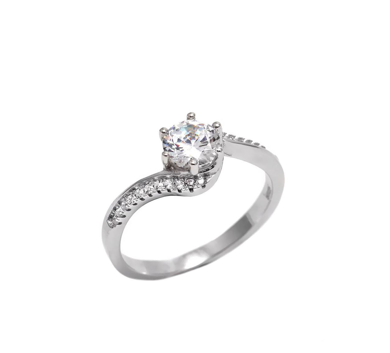 Ασημένιο γυναικείο δαχτυλίδι μονόπετρο.