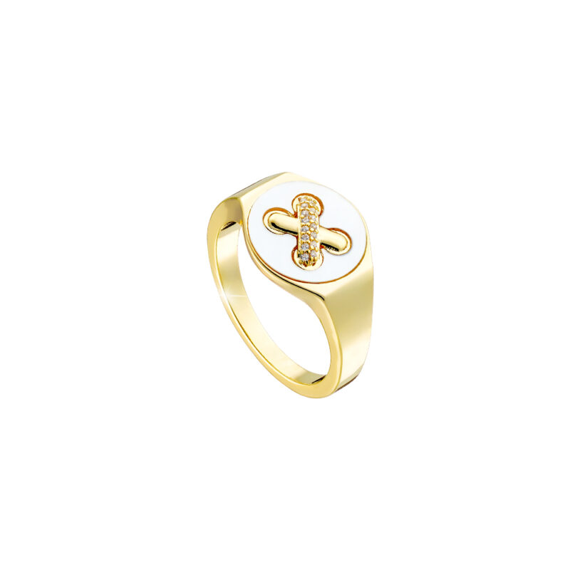 Δαχτυλίδι Desmos Loisir επίχρυσο με λευκό φίλντισι.