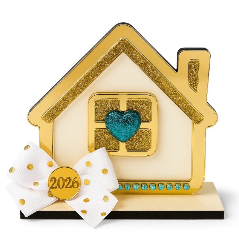 Το σπιτάκι είναι στολισμένο από χρυσό plexiglass καθρέφτη με γκλίτερ.