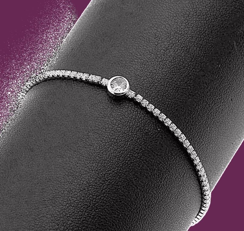 Βραχιόλι από ασήμι 925, σχέδιο ριβιέρα με λευκά ζιργκόν και στρογγυλό ζιργκόν στο κέντρο.
