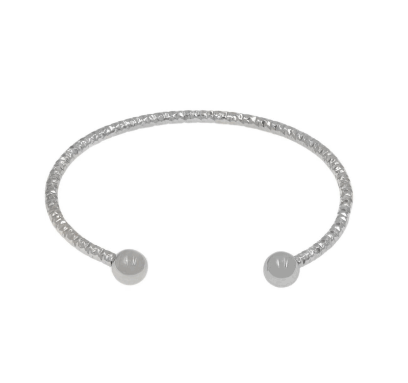 Βραχιόλι χειροπέδα από ασημί ατσάλι διαμαντέ, με μπίλιες.