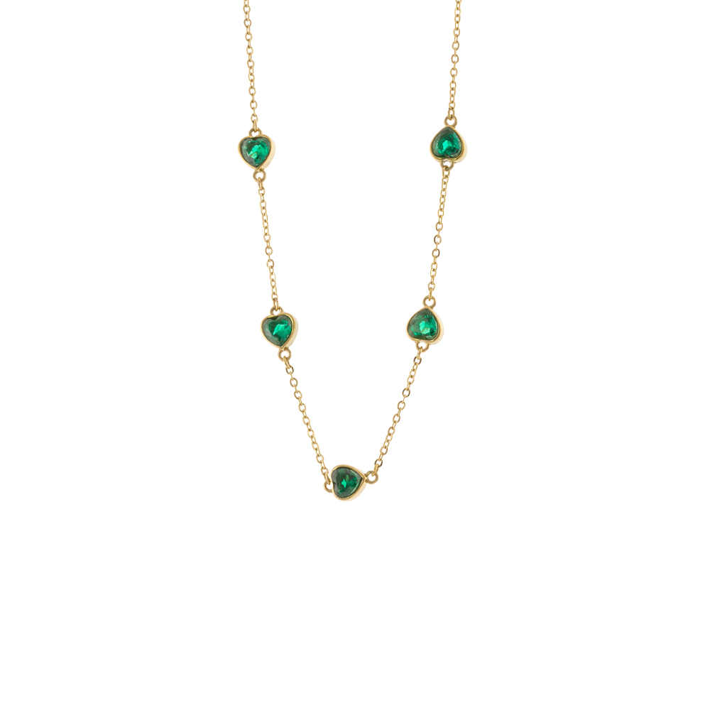 Κολιέ από επίχρυσο ατσάλι με πράσινες καρδιές από ζιργκόν.