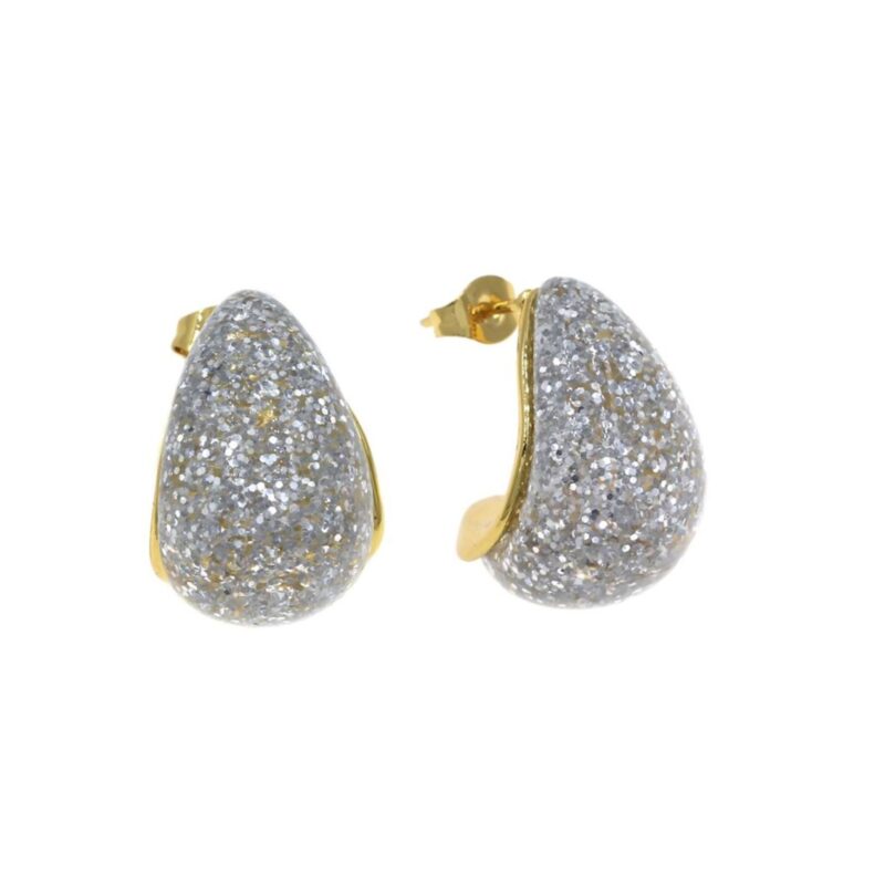 Μοντέρνα σκουλαρίκια από επιχρυσωμένο ανοξείδωτο ατσάλι με σμάλτο σε ασημί χρώμα- όψη ασημόσκονης.