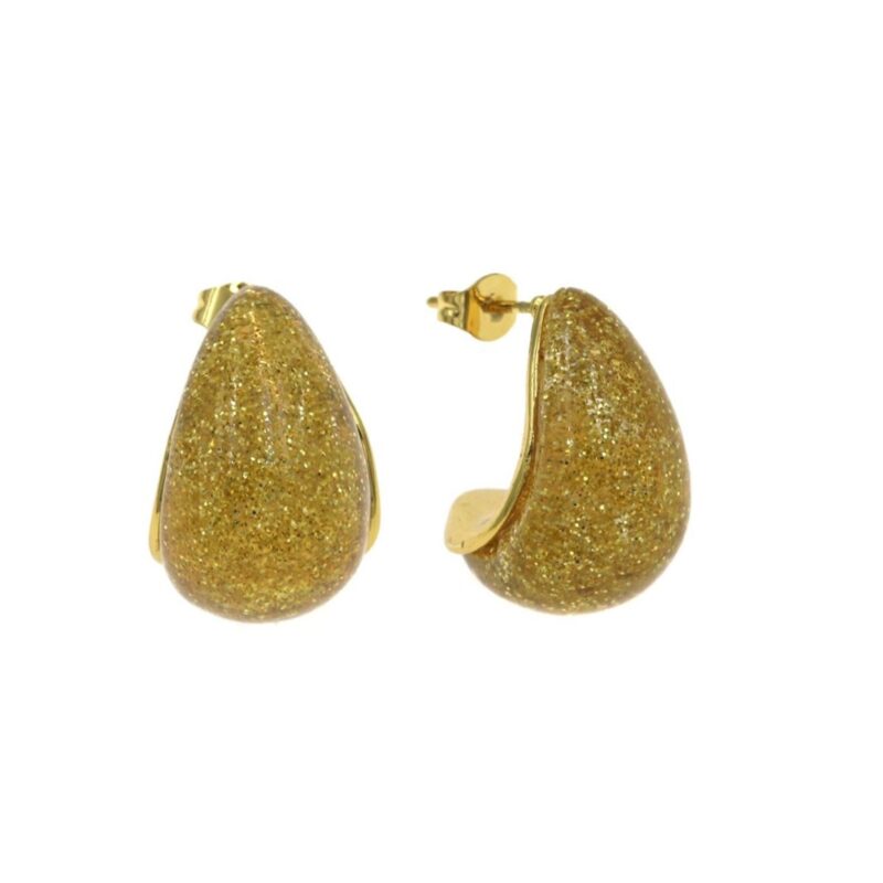 Μοντέρνα σκουλαρίκια από επιχρυσωμένο ανοξείδωτο ατσάλι με σμάλτο σε χρυσό χρώμα- όψη χρυσόσκονης.