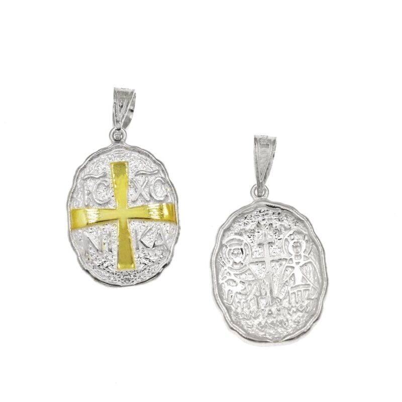 Μενταγιόν Κωνσταντινάτο οβάλ ασήμι με επίχρυσο σταυρό.