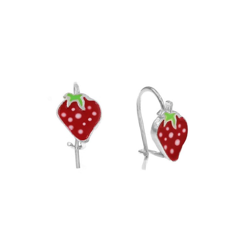 Παιδικά ασημένια σκουλαρίκια φράουλες με γάντζο.