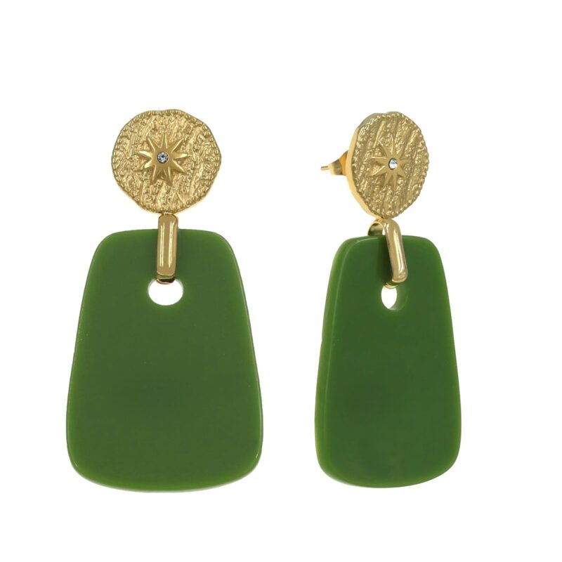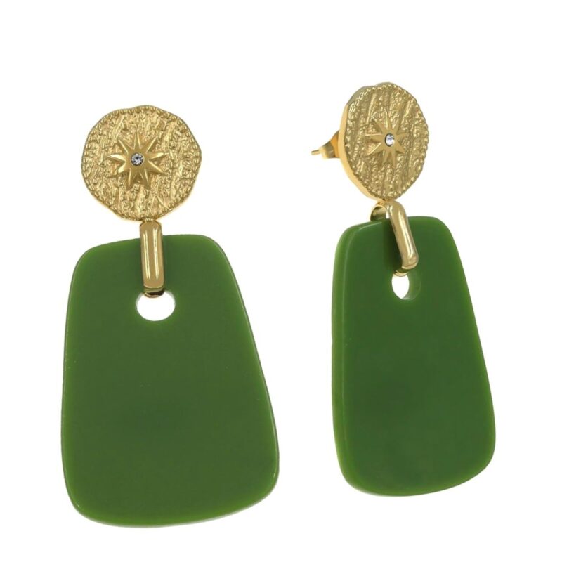 Σκουλαρίκια ατσάλι κρεμαστά πράσινα.