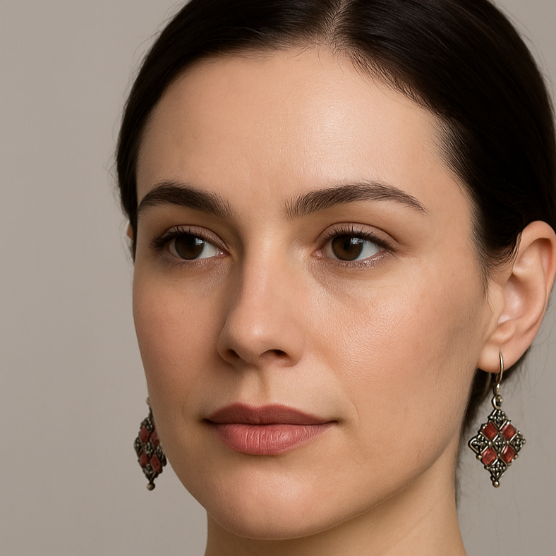 Βυζαντινά κρεμαστά σκουλαρίκια κοραλί χρώμα Dimitrios Exclucive.