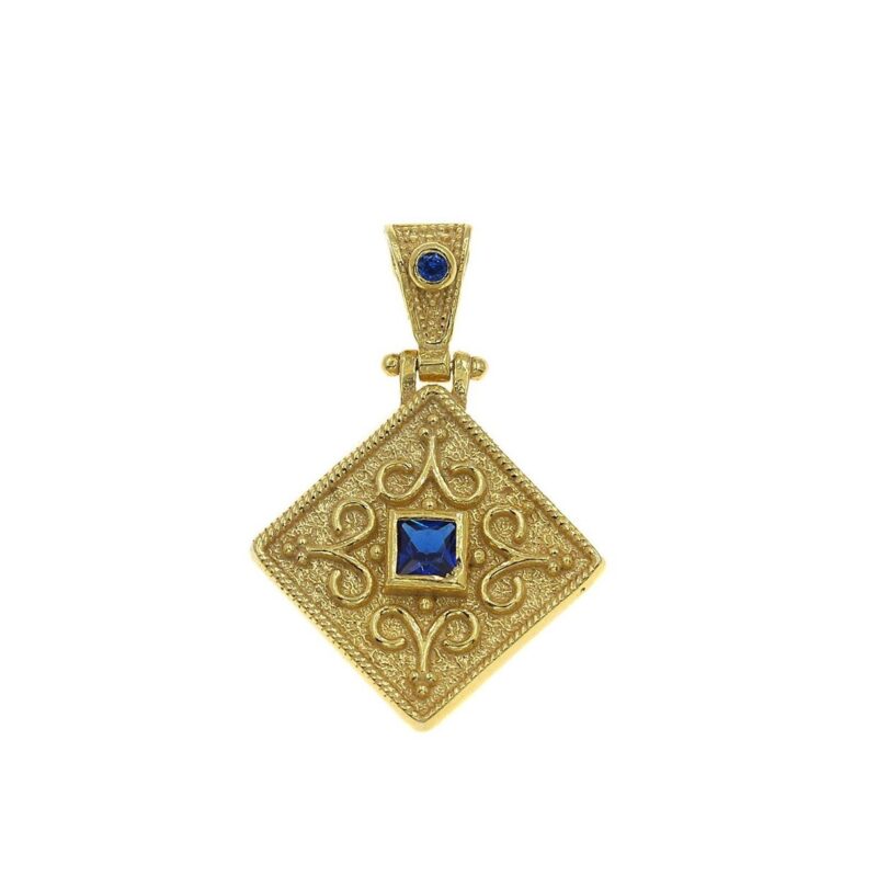Βυζαντινό μενταγιόν ασήμι επίχρυσο ρόμβος μπλε ζιργκόν